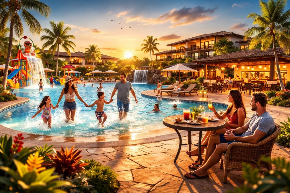 A diferença está na integração da experiência. Em vez de apenas oferecer hospedagem, o resort concentra alimentação, lazer aquático, atrações infantis e áreas de descanso em um mesmo complexo, o que reduz deslocamentos e aumenta o aproveitamento da viagem.